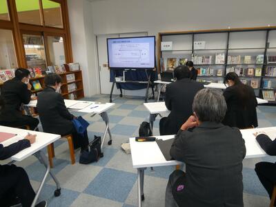 市内小中学校より7名の教員が参加し、個別最適な学びと協働的な学びの視点からの授業改善について、授業提案をもとに話し合いました。